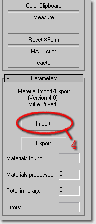 The normal texturing method does not work for many people. Another method,then, is to import whole matlibs prior to using the materials in them. This can be accomplished with the MatExport plugin. Inside 3D Studio Max, to access this plugin. Just click on: