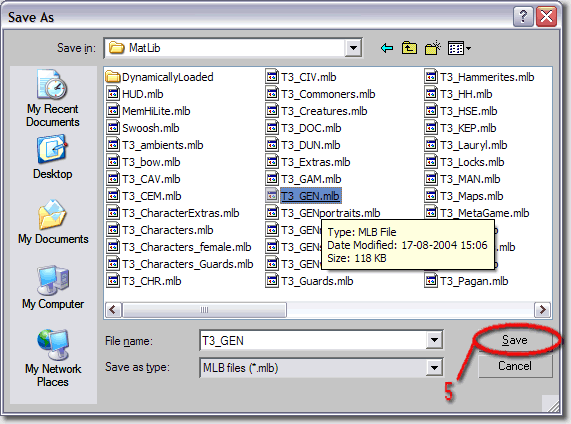 - 1.5 In the resulting file requester, browse to [your T3ED folder]\CONTENT\T3\MatLib and click on your desired matlib file, then click the 'Save' button.