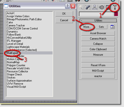 Note, that the MatExport plugin can also be assigned to a button in your 'Utilities' Rollout for more convenient access. See section 4 below to add such a one, and come back here after you're done.