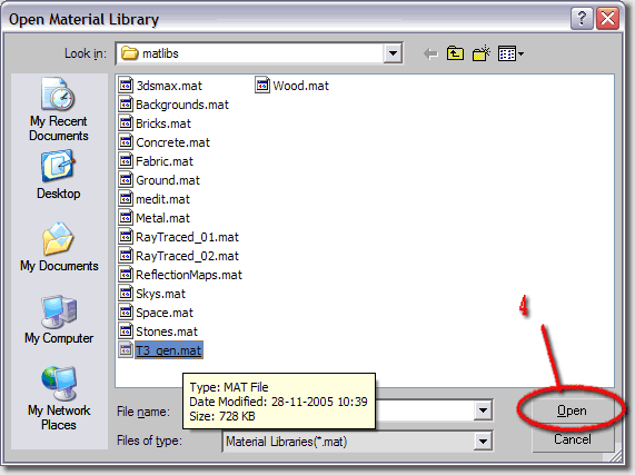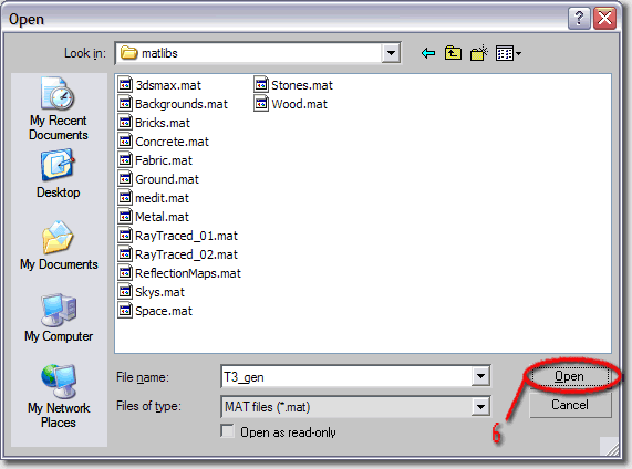 - 2.4 in the resulting file requester, browse to [your 3ds 5.1 folder]\matlibs, or wherever else you might have put your new material library. Double-click on your newly converted .mat file to open that material library, or single-click the file and then click the 'Open' button.