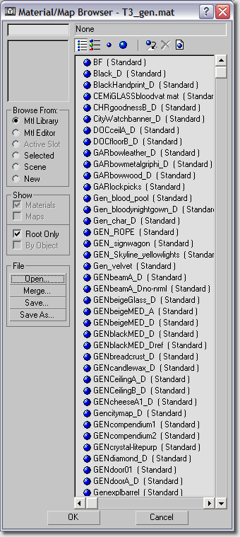 For a good place to store your newly converted Thief matlibs, I recommend you browse to [your 3ds 5.1 folder]\matlibs and give your Matlib the same name as the .mlb file you just clicked on, which would be something like "T3_GEN".