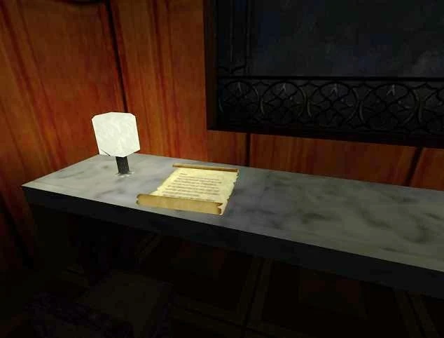 Location: on a table, in the nearest house to the front gates