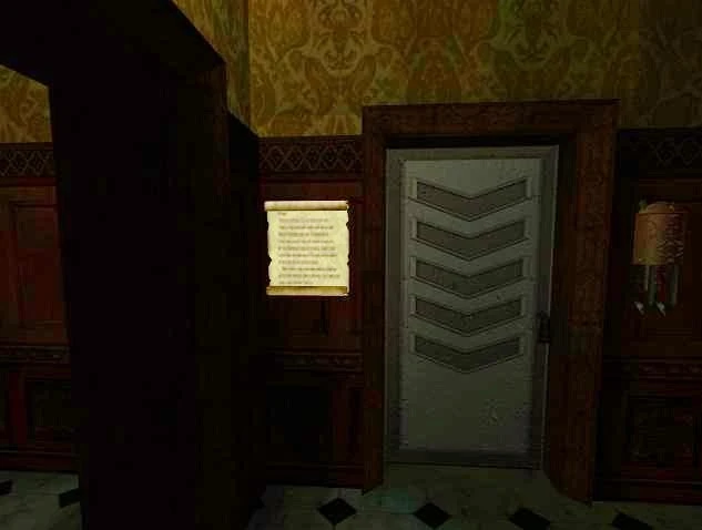 We all know that many criminals harbor a vendetta against me, so I have decided to have a Mechanist install several security devices throughout the estate. A new mechanism has been installed to lock all doors leading up to higher floors in the mansion. These doors cannot be forced open or unlocked using conventional means. All doorways that lead to upper levels will be locked every night and will unlock again in the morning. -Sheriff Truart
