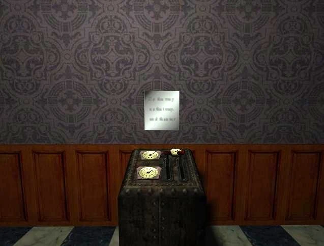Description: A small golden label. Immediately after the button next to it is pushed, two Green Spiders are spawned behind the character.