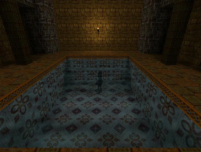 Description: When the player jumps in the pool, he will bounce oddly on the surface. If he tries to sink in he'll be pushed back up.