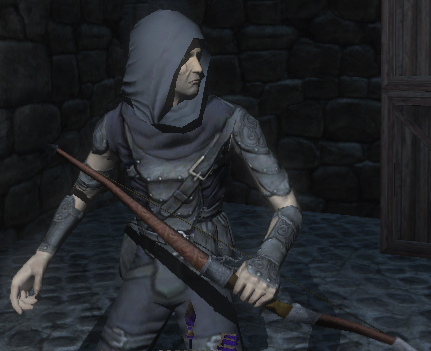 An added use only in Thief: Deadly Shadows is that the bow can be used to "mug" civilians walking The City's streets. Drawing the bow in front of unarmed citizens will cause them to panic after which they will drop all their valuables and flee from danger.