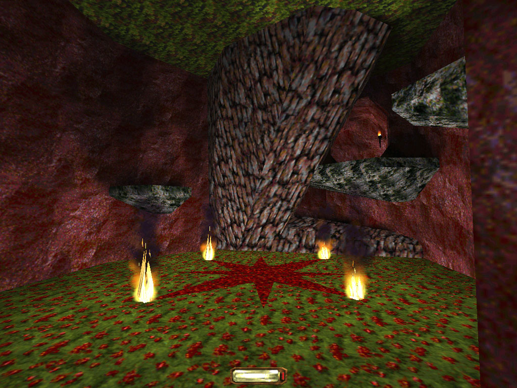 The mission begins in the strange chapel-like building from the garden in Constantine's mansion. However, the main doors are locked, the only exit being a side door that leads down into the caverns of maroon rock that make up most of the mission. The caverns are almost as maze-like as Constantine's mansion, replete with flickering lights, gravity defying water and trees growing far from light. Here players find a menagerie of beasts: armed talking monkeys, giant praying mantis creatures, exploding frogs, fire elementals, and plenty of giant spiders. Players must find the equipment to survive and a way back to the surface. It is in this mission that players find clues to the "Dark Project" itself.