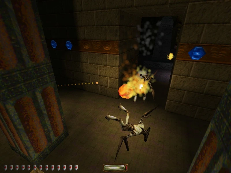 Fire Elementals are magical beings entirely composed of fire, simply described as flying fireballs. They inhabit subterranean areas, often near lava pools, most notably in The Lost City. Most elemental beings require a skilful mage of the respective elemental school, in order to be summoned. Fire Elementals are unique because they are the only elemental entity that seems to appear naturally, without apparent magical intervention (see Air Elemental). Although it may be possible that spellcasting was performed before Garrett meets them, and the Amulet of the Fire might be linked somehow to their summoning as some distantly spawn when it is stolen. They are quite rare and tend to inhabit areas far away from humans. As all elementals, they show a very limited level of consciousness. Fire Elementals wander the areas they populate and react aggressively to any non-elemental being in their vicinity, which can include everything from Humans to Burricks.