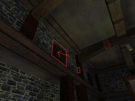 Claiming: In the small side room on the west end of the Training Room there is a movable torch. Turn it to open a secret passage North of the balcony. Climb on the balcony (by shooting a rope arrow at a wooden beam on the ceiling) and go to the hidden space behind the clock. Then pull the lever at the back of the clock’s mechanism to gain access to sheriff Truart’s office. To open the passage from the other side, use the statue on the left side of the fireplace and the switch in the Northeast of the hidden space.
