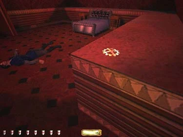 A: They require 'gears' - different ones for each level of the house. The metal gear for the second floor can be picked from the pocket of a patrolman. For the third floor, the silver gear is in the bottom of the pool (figure 13). Turn the cameras off in the security at the north end of the hall. A bronze gear (figure 14) can be found in Truart's room.