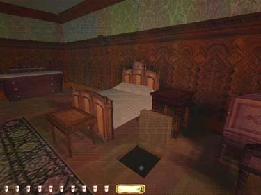 In the northwest bedroom on the first floor (south of the chapel), frob the torch mount over the bed for a gem in the floor on the other side of the bed (figures 6 and 7).