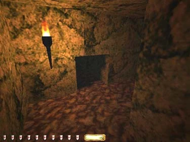 There's an old friend patrolling down here (a haunt) so be very careful. Make it to the inner hall and find the door to the shrine on the north side, grab the skull, then go to the southeast corner of the outer hall. Use your sword to break the board (figure 6) and take the crawl space to the torture room. Use the button on the right to raise the gate, grab the purse from the corpse (figure 7), and go back the way you came to the chapel.