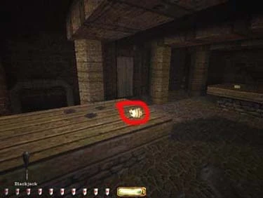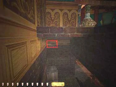 In the basement, look in the armory to the north of the workshop. Under the back right shelf by the sword case, you will find a switch (see figure 1) which reveals a hidden compartment. This secret holds a flash bomb, a few flares and a purse worth 50 gems.