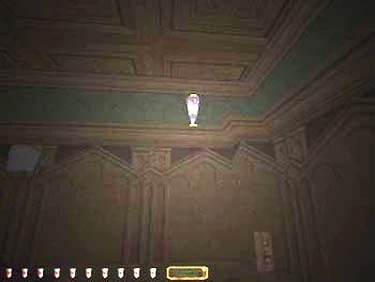 The room that holds this easily missed goblet is in the eastern wing (the room on the right, under the arches). The goblet (figure 14) can be better seen when you turn off the light switch in the room (figure 15).