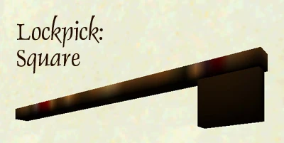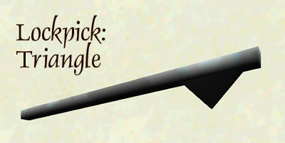 These picks come in a set: one silver, triangle tooth, and one bronze, square tooth. Move close to the door (closer then when standing in range of being able to open the door), select one pick from the inventory and use it on the door. If a fiddling sound is heard the door is being unlocked but if a clicking sound is heard it means that this pick does not work on this specific door. If so try selecting the other pick and using it on the door to see if that one works. If both lock picks don't work it means that that door cannot be picked and it's time to go look for a key or other way in. It is often necessary to use both picks in an alternating way on the same door.