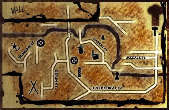 During the time of The Dark Project, maps of the sealed section were still easy to come by, but most of them were not very detailed. The map at the top of this page is the one Garrett used when he traveled trough the sealed section in search of the Old Hammer Cathedral.[2]