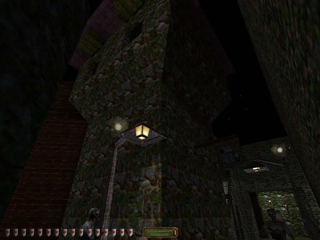As the section had been abandoned for fifty years many creatures have found their way in the withering buildings and ruins besides the current Undead creatures. Craymans and Burricks have been tunneling and living in the sewer system and Green Spiders can be found in some places. Zombies and Apparitions patrol the streets and some houses even contained Haunts and (in Thief Gold only) Fire Shadows.