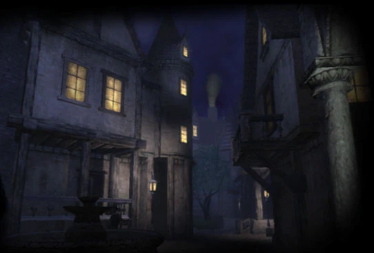 - A sizeable attic compartment above the guardhouse and adjacent buildings can be accessed via a series of awnings in Black Alley or by the bare stone wall across from Garrett's home. In it are two Flash Bombs and a bottle of Fine Wine. This area is only accessible after Garrett has obtained the Climbing Gloves from the fence in the Dock area which becomes accessible only on Day 3.