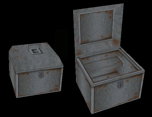 The closed and opened strongbox next to each other.