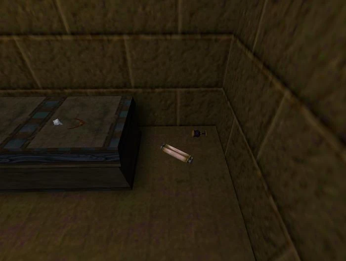 Location: on the ground, behind an old bed in the lower floor